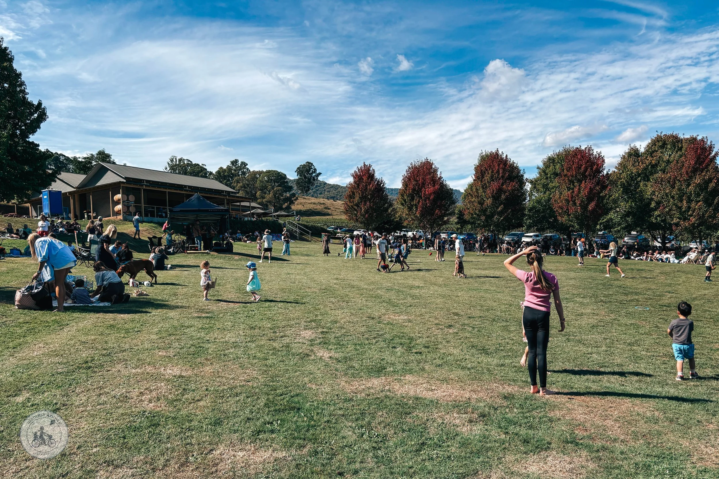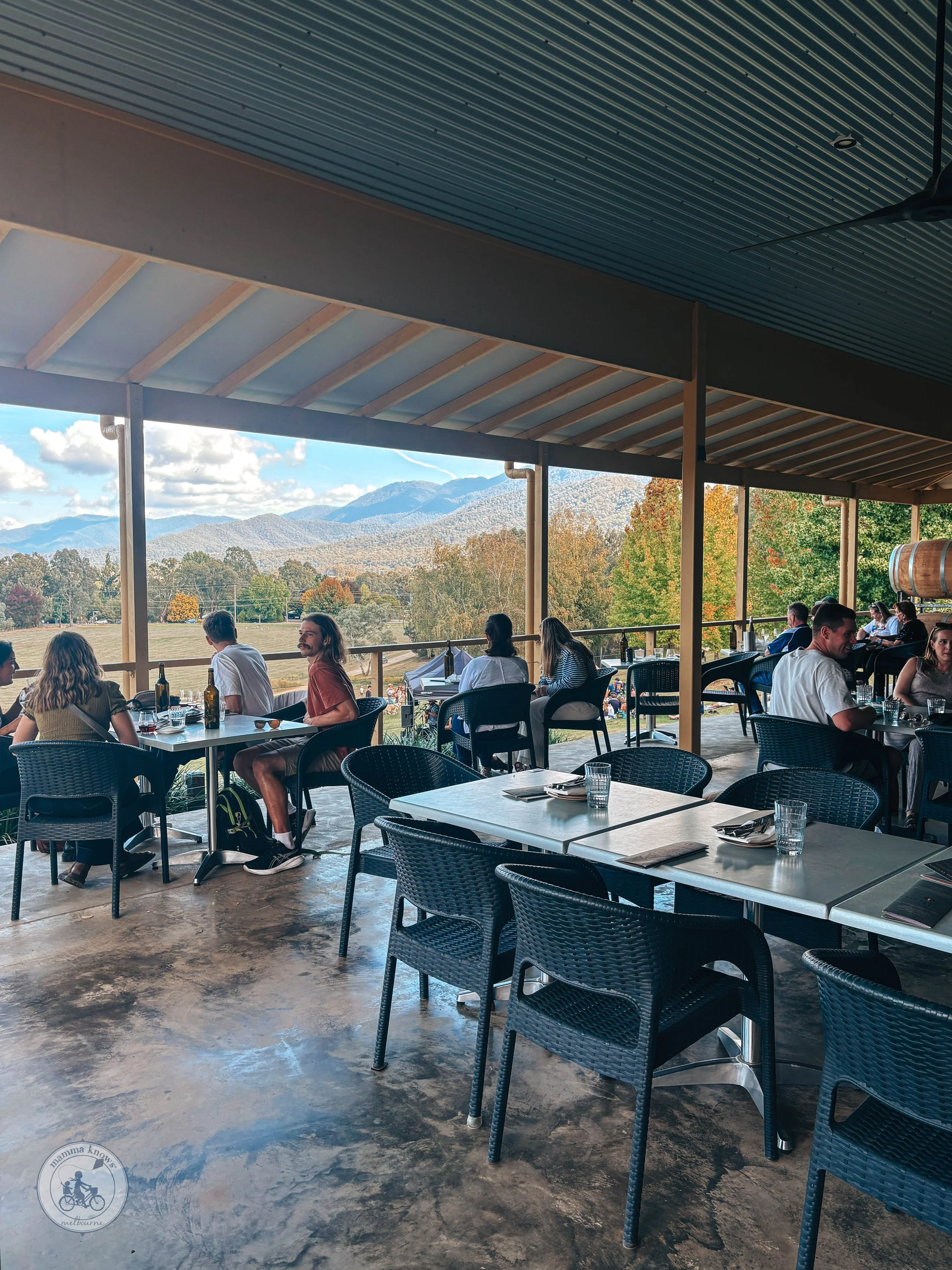 /What’s better than lying in the sun with a cheese platter and glass of wine while the kids play on the grass? When the backdrop is the beautiful Ringer Reef Winery in Porepunkah of course!