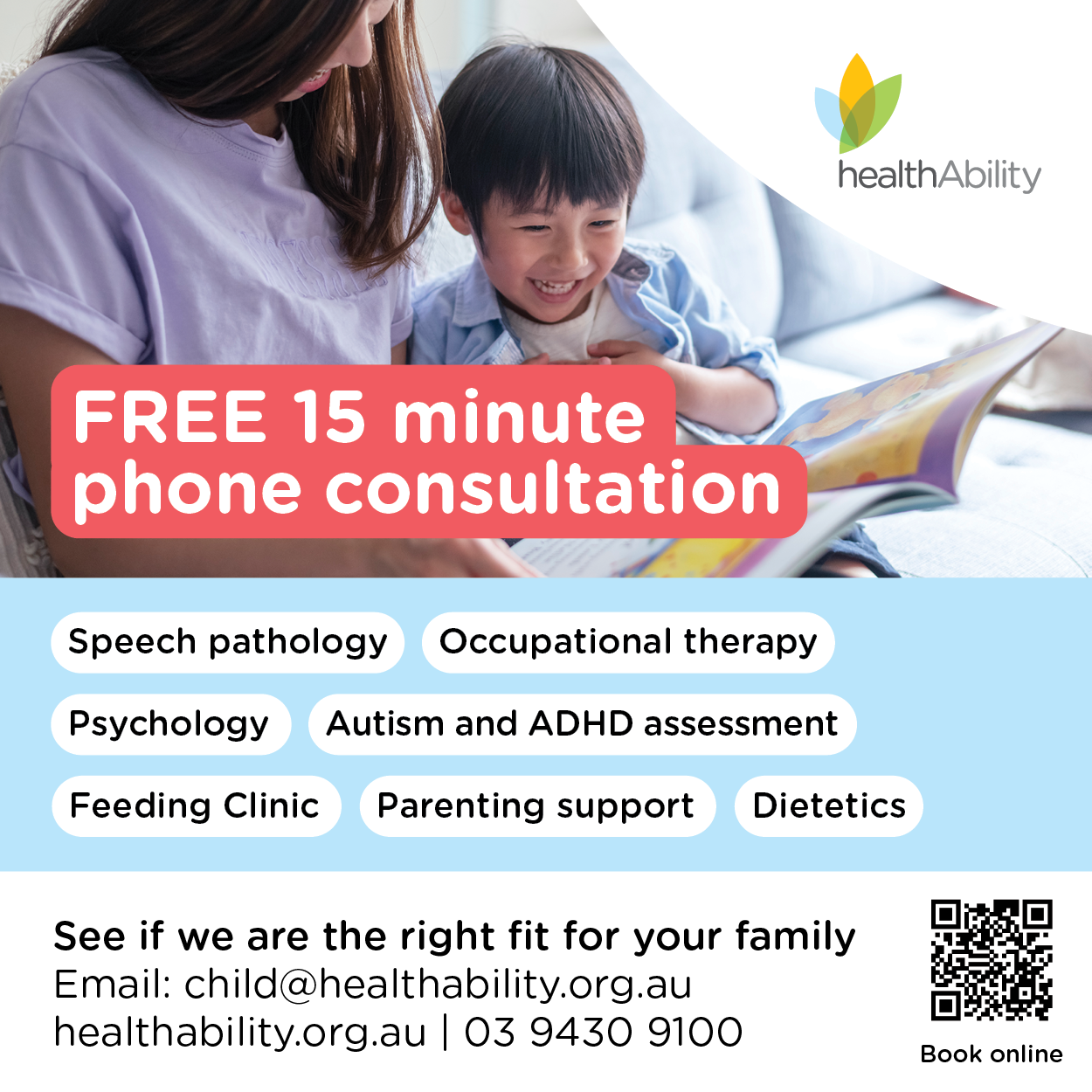 healthAbility are a health and wellbeing organisation that offer a wide range of family health services across Melbourne’s North and East. To see how they can help support your family, they are currently offering FREE 15-minute phone consultations for their children’s services until April 30, 2026