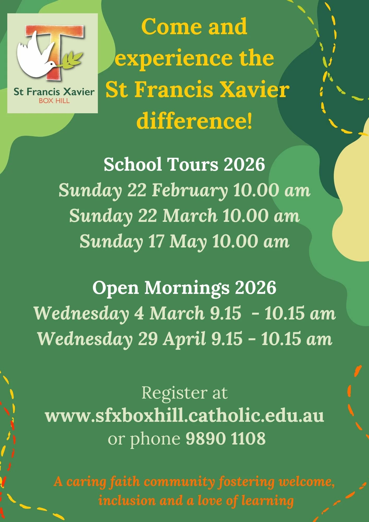 School Tours for St Francis Xavier box Hill are now open for bookings!